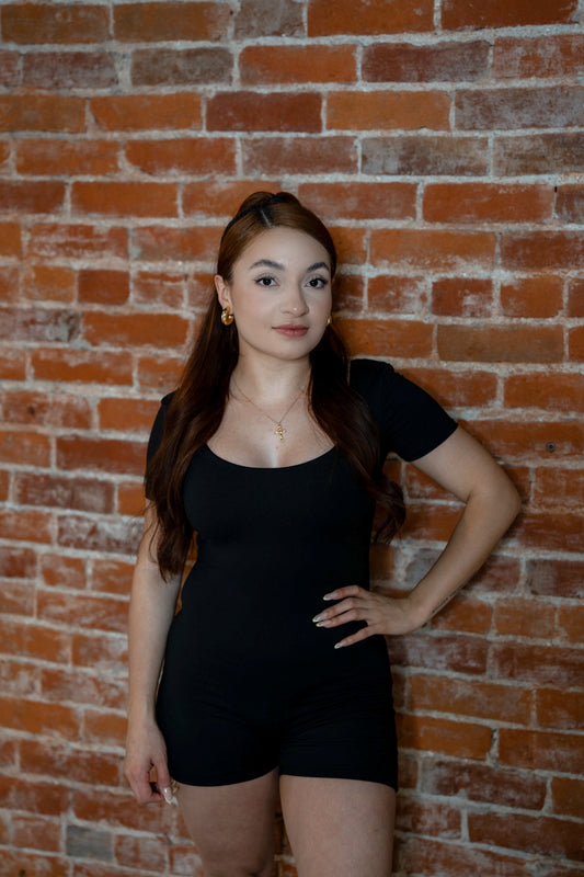 Short Sleeve Scoop Neck Solid Romper